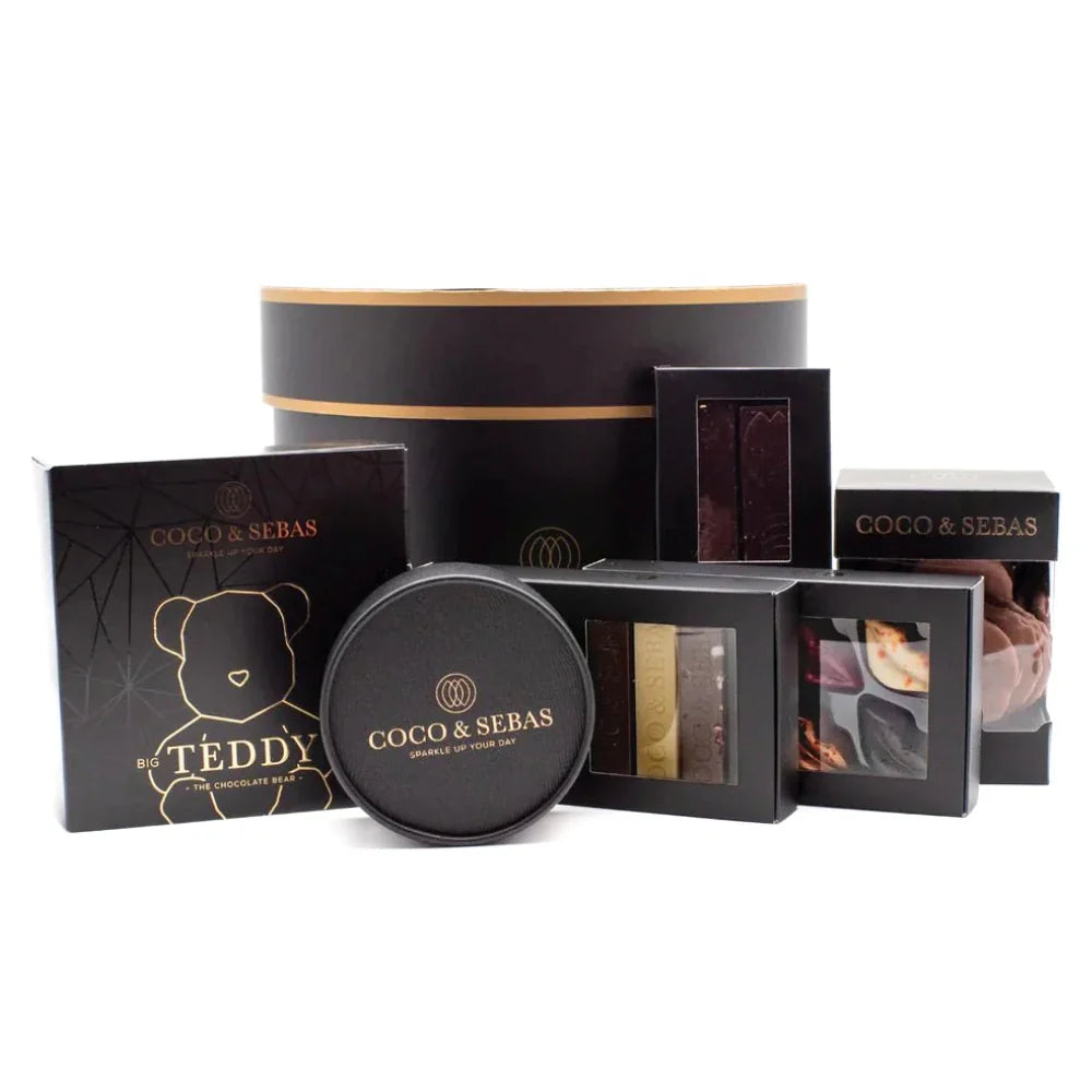 Iemand een extra grote knuffel cadeau doen! De grote knuffelbox bevat ons iconische chocolade teddybeertje, heerlijke kusjes bonbons, een doosje melkchocolade stroopwafeltjes en nog veel meer. En dat allemaal verpacht in een prachtige Coco & Sebas geschenkdoos.